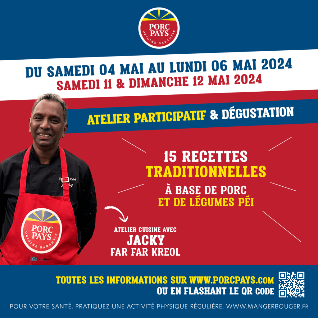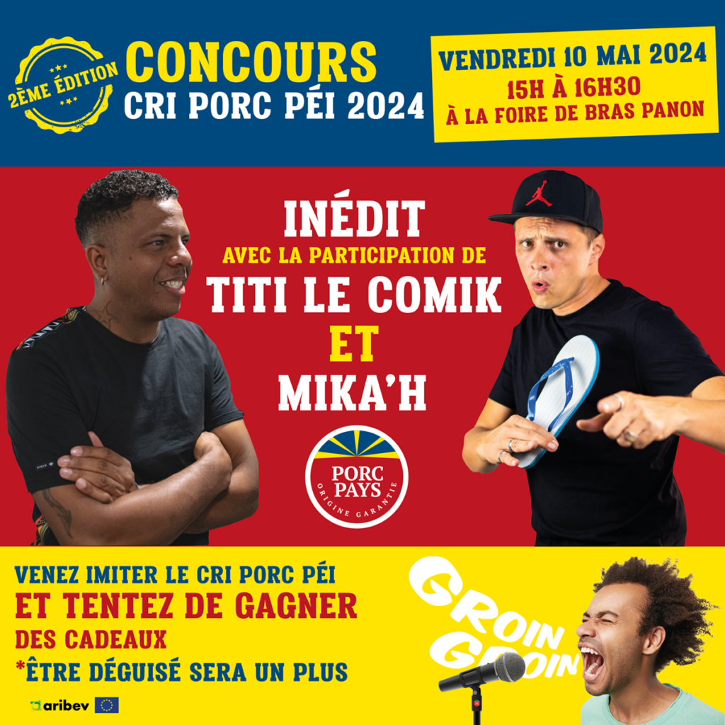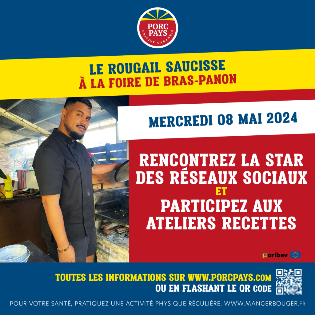 Au cœur de l’effervescence de la Foire de Bras Panon, le stand de Porc Pays vous attend pour faire le plein de divertissement et de délices. Participez à nos ateliers gourmands, ou encore au concours cri Porc Pays 2024.