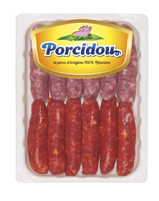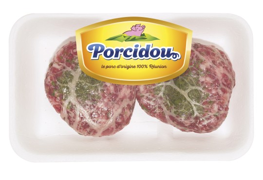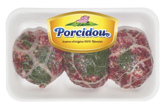 Viande de porc (94%), crépine, sel, dextrose, arômes naturels, plante aromatique (thym), ail, hémoglobine de porc, épices, arôme : acérola, maltodextrine, extrait d’épices, persil.