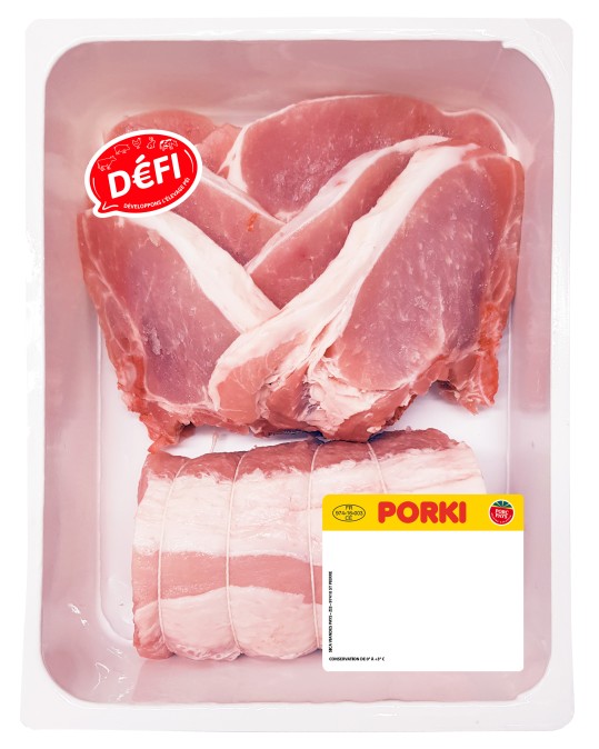 Caissette 1 rôti longe et 6 côtes de porc PORKI